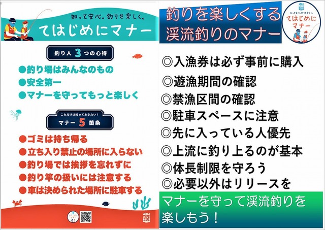 15cm以下の魚は未来の楽しみのため必ずリリースを。必要以上な数を持ち帰るのはやめましょう!ごみは必ず持ち帰り。釣り人同志の間隔を充分開ける。気持ち良い挨拶で楽しい釣りを!