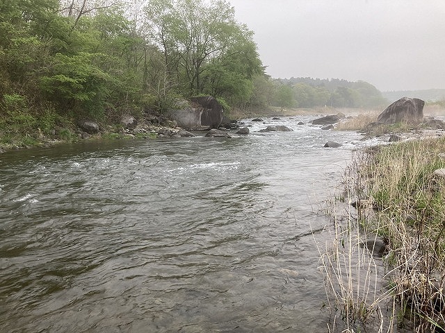 那珂川は上流部と下流部とでは川の様子が様変わりします。那珂川の支流である余笹川との合流から上流部では5ft前後の渓流用ロッドでも十分対応できる川幅で、渓流用スプーン・ミノーを主に使います。早瀬と淵が交互にくるほぼ渓流相のような川です。川の落ち込みや沈み石が各所に点在し、魚の付き場もわかりやすいです。テトラポットや護岸堤防といった人工物が限りなく少なく自然なフィールドといった感じです。河川敷公園もあるので入渓はさほど難しくありません。