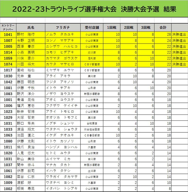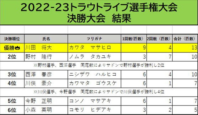 上州屋×TORAY カップ トラウトライブ選手権2022/2023 ファイナル