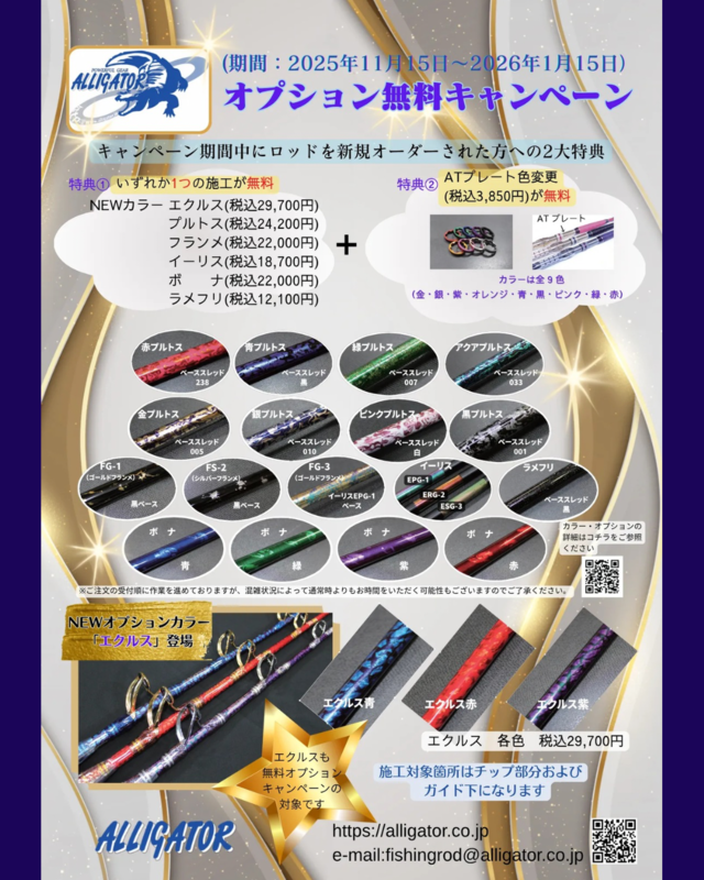 いよいよ今週末!!アリゲーター技研 年末グラスワンピースロッド展示即売会開催のお知らせ