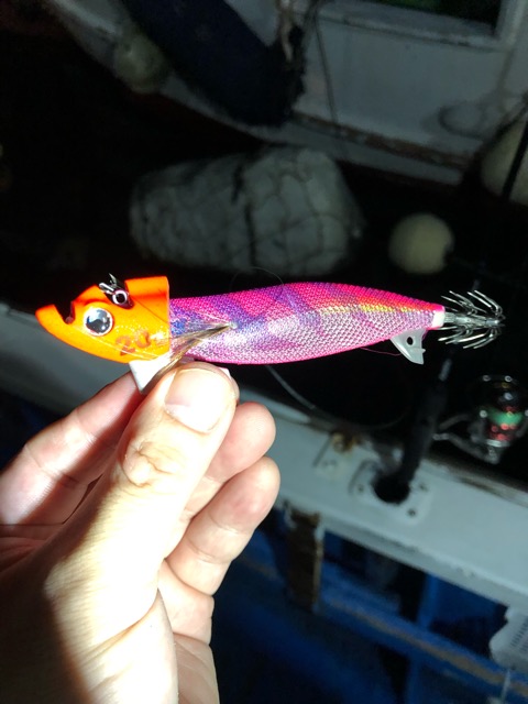 今回のポイントの水深は20~40m。40gのエギでもボトムが取れない時がありました。エギ・シンカーのサイズはいろいろお持ち頂くことをおススメします。