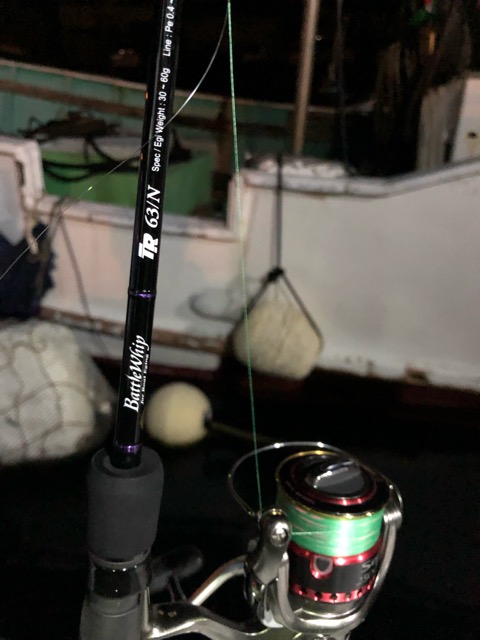 風雨うねりとあたりが取りにくい状況でしたが、ヤマシタNEWエギ王TRの安定スイムとヤマガブランクスバトルウィップTR63Nの感度に助けられました^_^