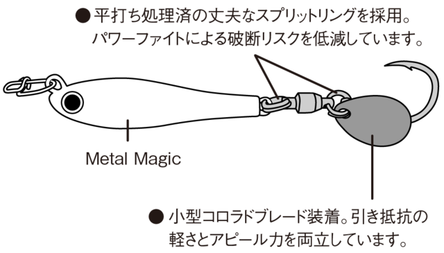メタルマジック専用に設計されたブレードは引き抵抗の軽さとアピール力を両立。