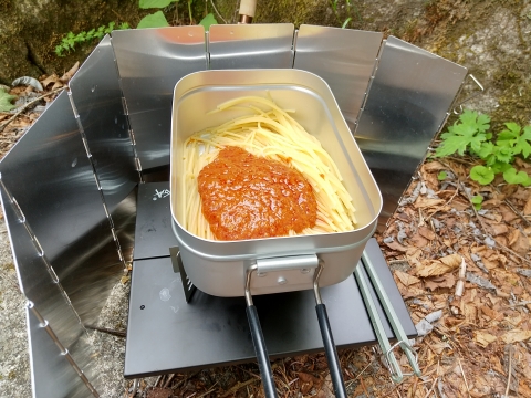 今回もアルコールストーブを持って行ったのですが、アルコールが足りなかったです。茹で上がる前に、沸騰が終わってしまった!