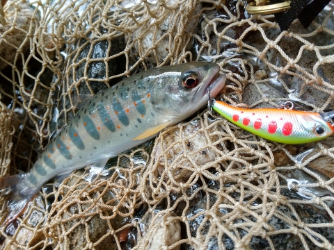 その後もチェイスは頻繁、ノーヒットが続きましたが、何とか22cmのイワナをキャッチすることができました。ヒットルアーは禁断の【AR-S】でした!