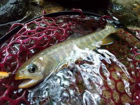 時々、真っ黒な良型イワナもヒットするのですが、ことごとくバラシ、ファイト中にポロリを連発!なかなかキャッチできませんでした!