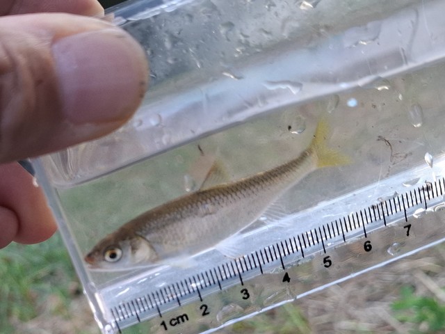 遊歩道からは魚の姿はすぐには見つかりませんでしたが、川縁まで降りて探すコトしばし…『見っけ~!』ってコトで…