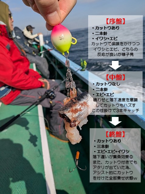 この情報を元にワタクシもイワシを追加して三本針でじっくり狙う作戦に変更!