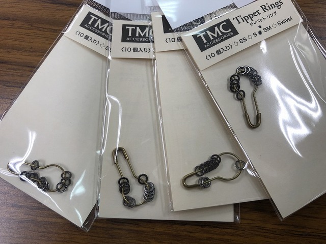 ティペットリング&スイベル。ティペットリングをリーダーとティペットの間に入れて結節してください。ティペット交換が容易になるとともに、リーダー側が結節毎に短くならないというメリットもあり、リーダーの消耗が軽減されます。