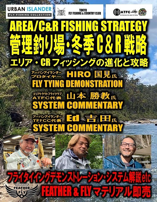 昨年に続き東京フライフィッシング&カンツリークラブからお三方をお招きして、管理釣り場&冬季CR区間の攻略法を、システム解説やフライタイイングデモンストレーションを交えて詳しく解説して頂きます。