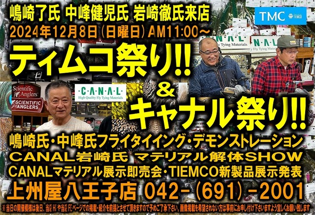 毎年恒例となっております八王子店フライフィッシング・コミュニティ・イベント、「ティムコ祭り & キャナル祭り」のご案内です。今年もお楽しみ企画盛り沢山のイベントを企画致しました。