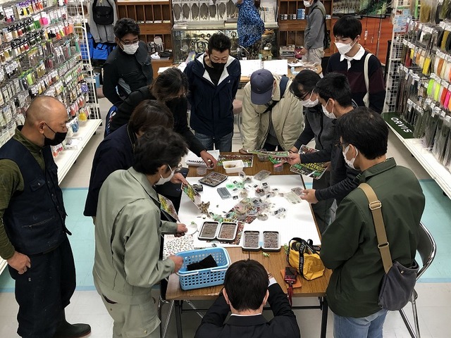 八王子店フライコーナーでは毎週金曜日夕方にフライフィッシングフリークの皆様が集うFLYDAYが開催されていますが、「シマザキフライ タイイングミーティング」はFLYDAYの定番人気企画としてこれまで18回開催されています。