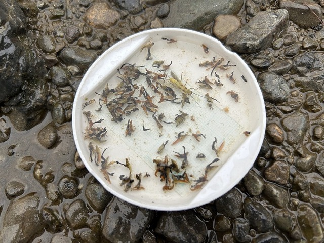 午前中~昼頃までは特段目立ったハッチ&ライズは見られなかったものの、13時過ぎからコカゲロウ、フタバコカケロウ、アカマダラカゲロウの複合ハッチによりライズが非常に活発になりました。俗にいう数釣りⅩデーと呼ばれる現象です。雨の冷たさも忘れ猛烈なライズを楽しむ事ができました。