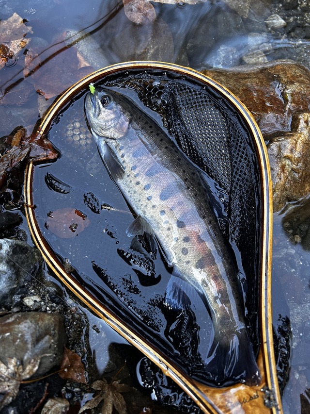 もっふぃ〜考案者の山本さんからは、現在企画中のカラーサンプルをいだだき、こちらも検証。これがまた更に更に高反応‼︎ しかもヤマメ連発です‼︎