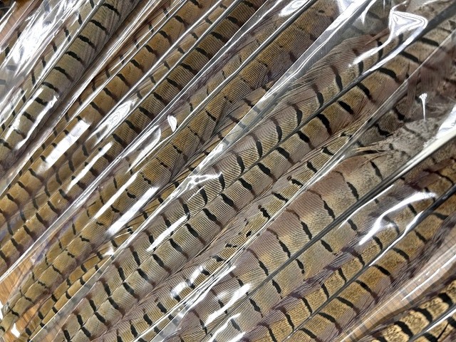 要チェック!! コックフェザントセンターテール。本来のグレー色調が強めの物を選びましたよ。フェザントテールニンフ、たくさん巻いて下さい!!
