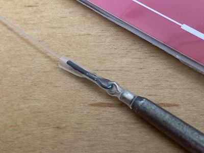 スルーダウンショットリーダー(6cm~13cm)にシンカーをカチッとワンタッチ装着、その後、収縮チューブでシンカーがぐらつかない様に固定するだけ