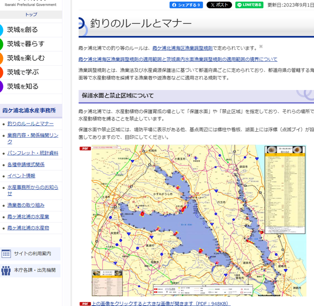 禁止区域や湖面での目印などの詳しい内容は茨城県のホームページ内にご座いますので、ご確認をお願いします。