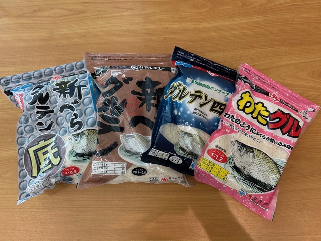 管理釣場は新べら放流が始まりますね。グルテン系のエサ、グルテンボールなど新べら狙いの必需品各種ご用意しております。ハリ掛かりしていないヘラブナの引きは格別ですよ!