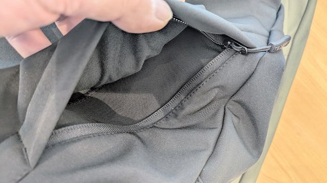 サイドポケットはファスナー仕様で大切なキーや財布を落とさないで安心。