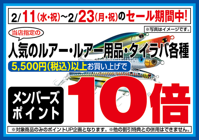 ルアーは5500円以上のまとめ買いで会員ポイント10倍! 会員でないかたもこの機会にぜひご入会を!