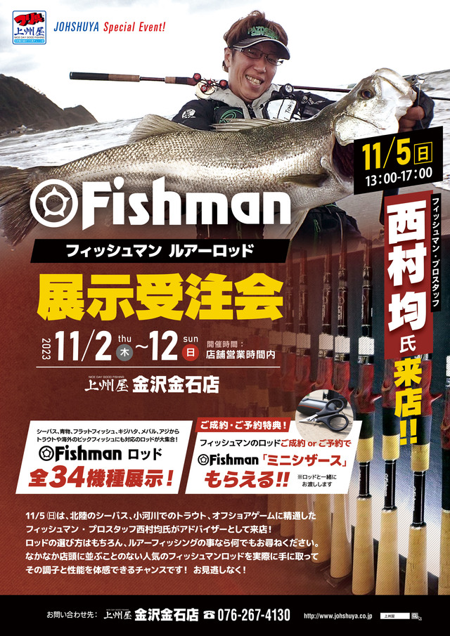 フィッシュマン ルアーロッド展示受注会開催致します。