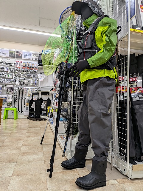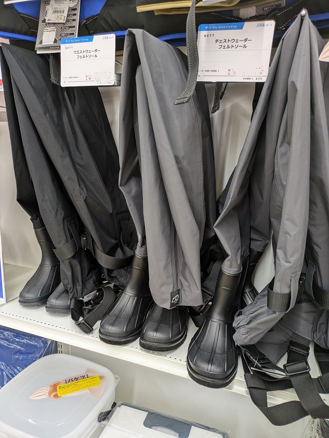 富山名産のホタルイカを浜で掬う時、波際で濡れないように、また少し海に入ってホタルイカを捕獲するときに無くてはならいアイテム「 ウェーダー 」。