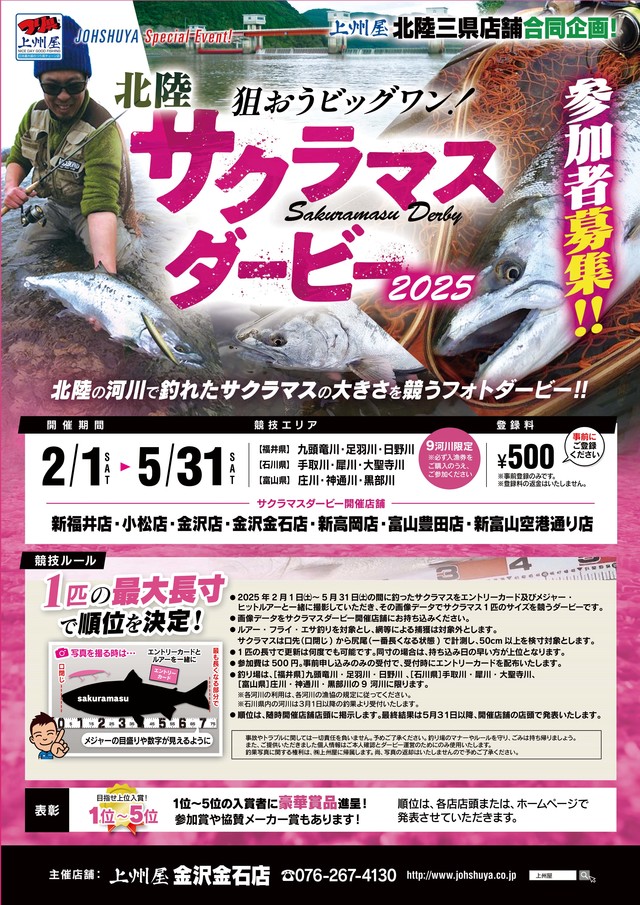 ・いわな・やまめ・さくらます・うなぎ遊漁区:大聖寺川漁協管轄内全域