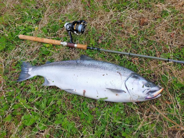 当店トラウト担当の西本もサクラマスをキャッチ。またルアー担当の宮内も続いてサクラマスをキャッチ。