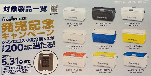 さらに、発売記念としてシマノロゴ入り保冷剤×2が抽選で当たるキャンペーンも実施中!!