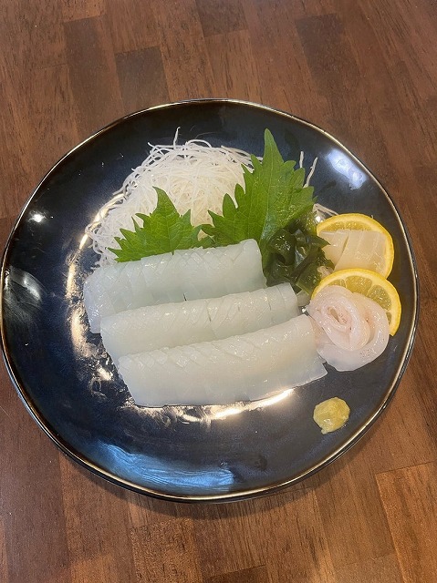 料理上手な佩川船長は、お客様からもらったアカイカを刺身に