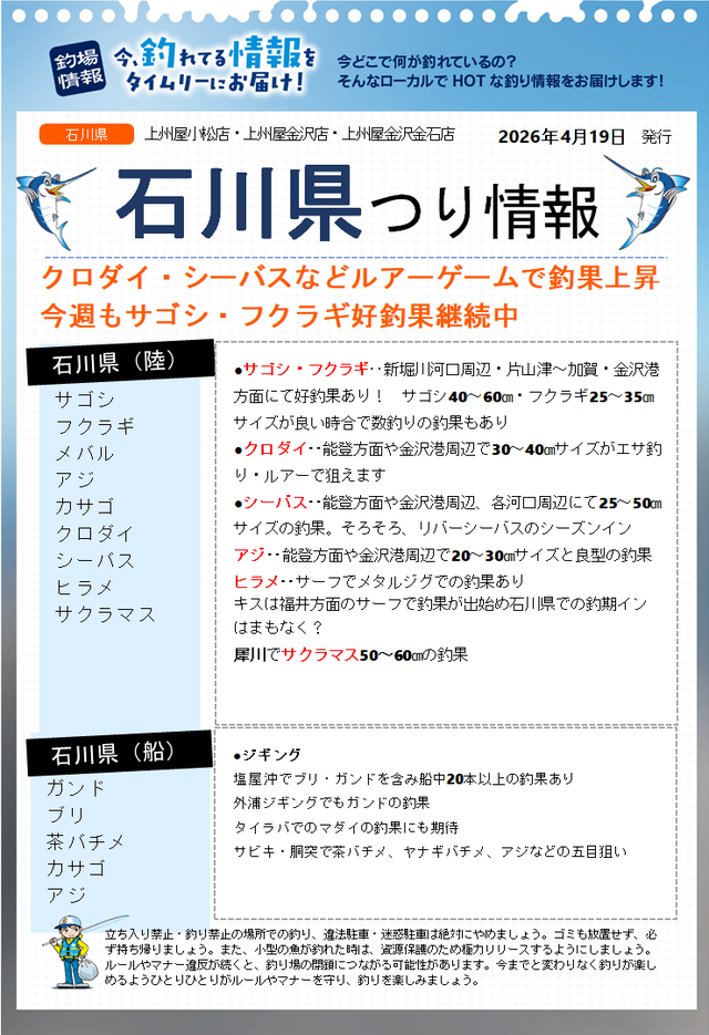2026年3月8日おすすめ商品 白峰漁協遊漁券入荷! 白峰漁協遊漁券入荷しました!解禁日は3月28日(土)です。 上州屋からのお知らせ ・会員証機能を搭載!お買い物や釣りの準備がもっと便利になる上州屋“公式”アプリ登場!・【上州屋メンバーズカード】毎月5の付く日と30日(5日、15日、25日、30日)はポイントアップデー!