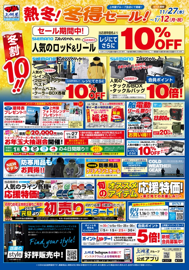釣り納めも、釣り初めも、おトクに満喫!上州屋の年末年始!熱冬!冬得セール!