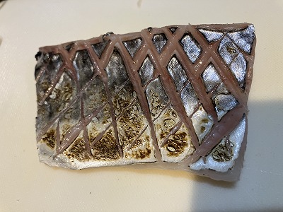 お腹と背中部の身をいただきました。皮に切れ込みを入れガスバーナーで炙ってみましたが、