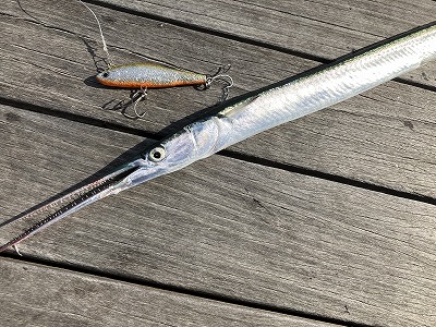 表層にダツが回遊していて、ルアーに好反応!