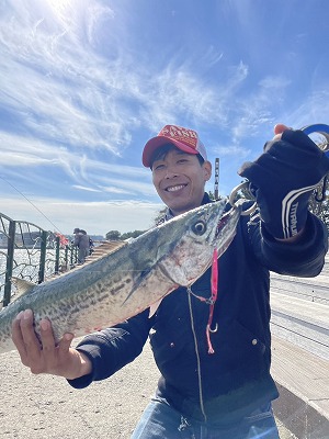 硬めのロッドだったので最初はイナダ・サゴシかな?と思っていましたが立派なサワラが上がってきました!最後のファイトではドラグも出されサワラらしい突っ込みファイトも。