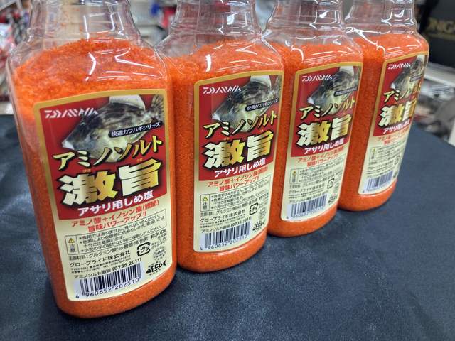 アミノソルト激旨!アミノ酸に加え、かつお節などに含まれるうまみ成分であるイノシン酸を配合!!それによってカワハギの食欲・活性を高めます!