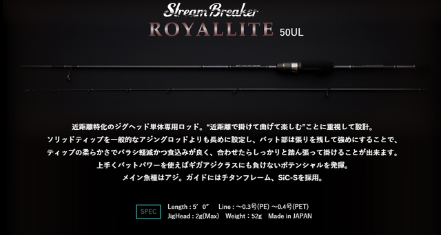 ストリームブレイカーロイヤルライトシリーズは誰にでも扱いやすく、あらゆる場所、状況に対応できる汎用性の高いシリーズとなっております。