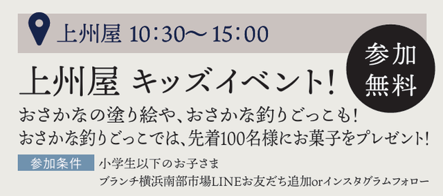 2/28(土)はブランチ横浜南部市場「さかなまつり」上州屋キッズイベント開催!