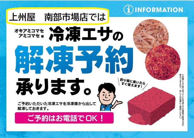 電話などで予約を入れて釣行前に受け取れて大変便利!
