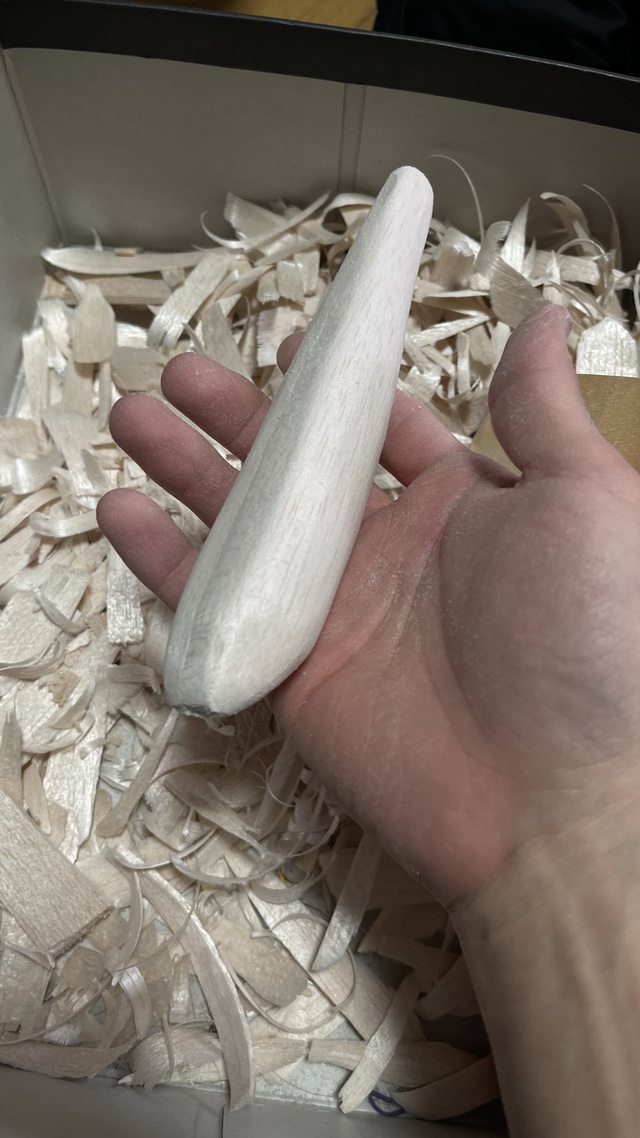 この後ワイヤーを入れる溝とシンカーを埋め込む溝を彫刻刀で掘り、埋め込んだのですが写真は忘れてしまいました。(笑)