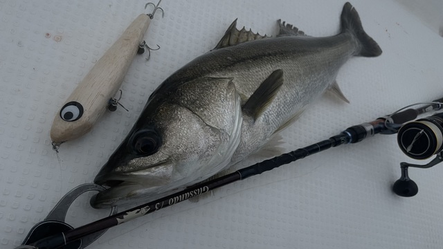 60cmほどと大きくはないですが自作ルアーでは久々のシーバスです!