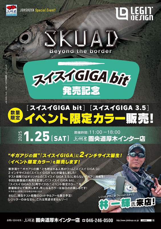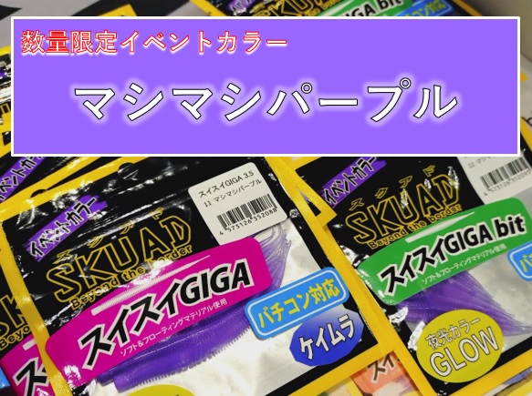 そして、数々のGIGAアジを捕獲してきた同社のワーム スイスイギガのイベント限定カラーを数量限定で販売します!