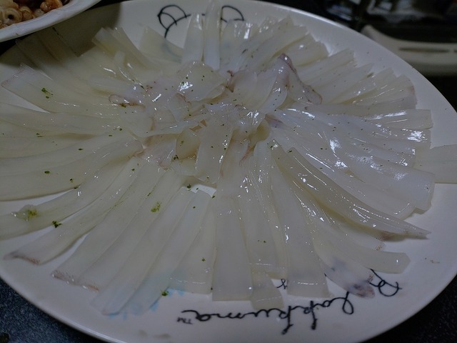 間違いなく美味しい刺身(青汁の粉末を少量こぼしてしまいました)!
