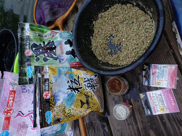 バラケ 粒戦100・瀑麩100・水150・吸水させてから、ふぶき200