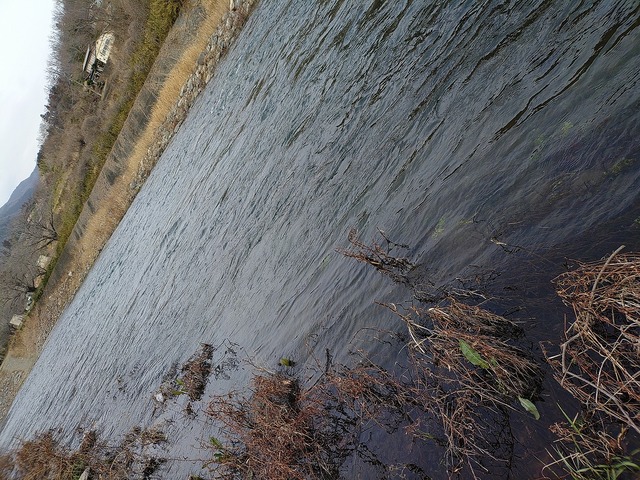 全国的に渇水の状況で羨ましい限りですが、これだけ水量が多いと対岸に渡るのは困難ですし、ルアーが水流に負けて上手く探れない。