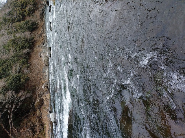 桂川本流は、3月いっぱいまで、駒橋発電所タービン工事の影響で増水しています。