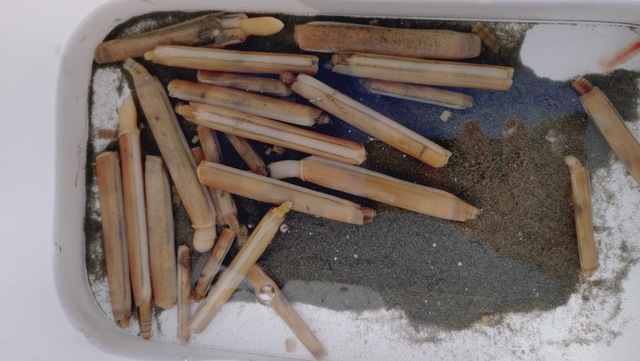 持参した食塩をフリフリ彡するとニョキっとマテガイが顔を出しました!