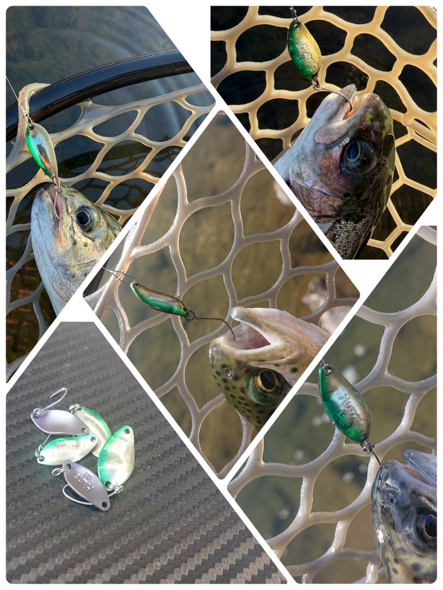 ◎八代目・・・強いフラッシングや蛍光色を嫌がるようなトラウトに効く、放流セカンド~サードカラー。水質を問わずどの釣り場でも使えるカラー