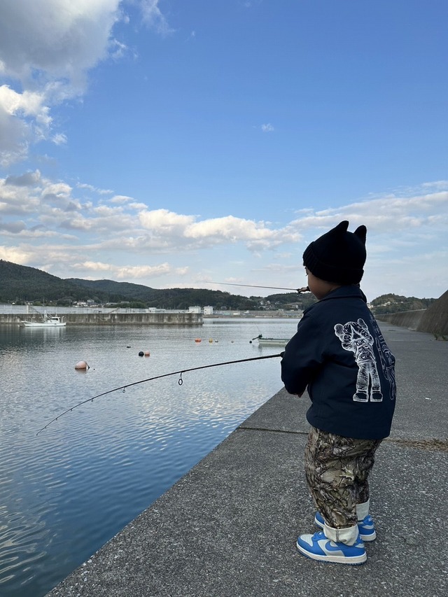 加藤組 信治さまのお孫様、釣り初チャレンジは岩手県のとある漁港。