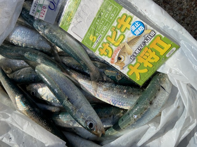 連日マイワシが好調で、この日もタイミング良く回遊があり、一時間半で良型イワシが50匹オーバーの釣果。